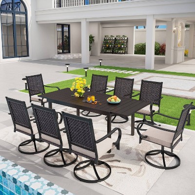 Product Item: Captiva designs phi villa 7 pcs patio dining set 6 piece cushioned spring motion dining chair 2025 with armrest & patio dining table