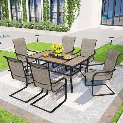 Captiva designs phi villa 7 pcs patio dining set 6 piece cushioned spring motion dining chair 2025 with armrest & patio dining table